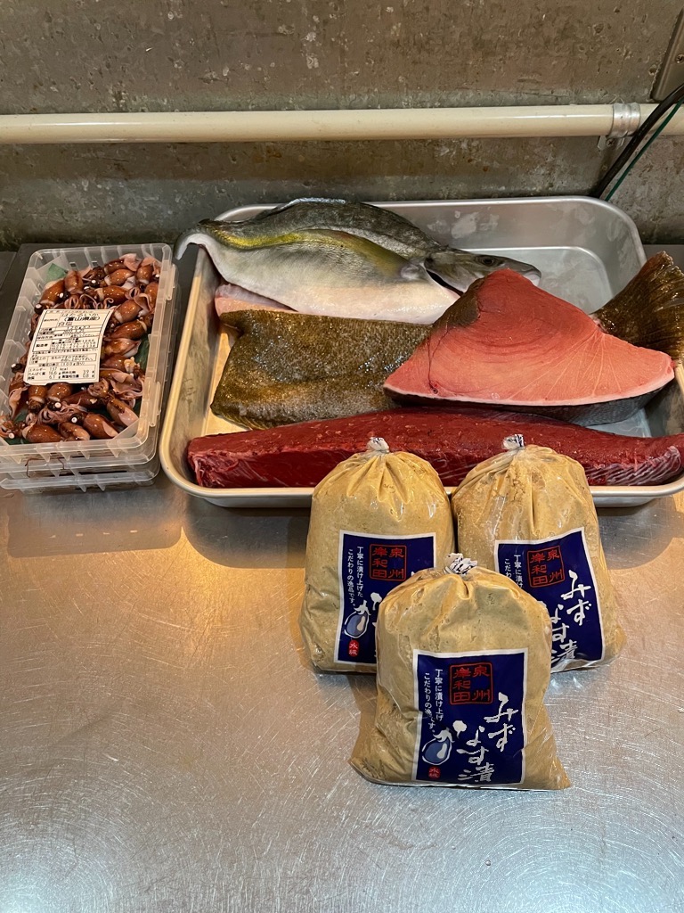 宮城県産 本マグロ、鹿児島県産 鰹、富山県産 ホタルイカ、シマアジ、ヒラメ、泉州水ナス